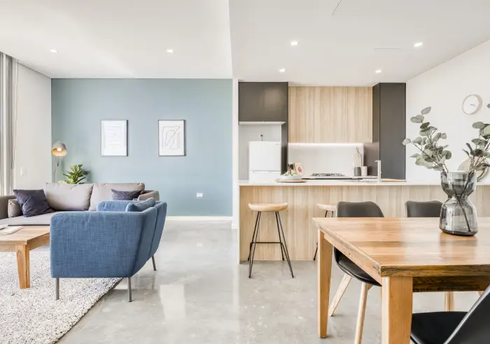 - Polished concrete floors throughout