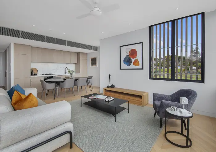 Part of a boutique collection of residences, this North East facing two bedroom apartment has expansive stretches of floor-to-ceiling glass and sliding doors fill every corner of the oversized living areas with an abundance of natural light. Ideally situated minutes from the languid pace of Sydney's Eastern Suburbs harbour beaches, villages and the bustling pulse of iconic Bondi Beach.