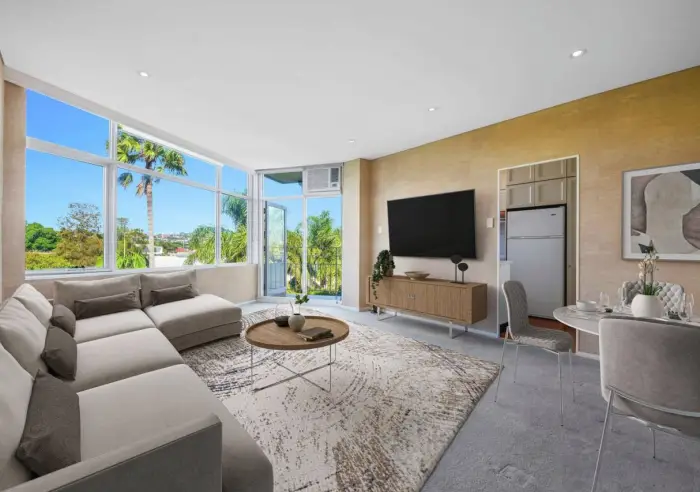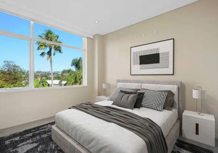 Spacious two-bedroom unit at the rear of sought-after block. Combined lounge and dining leading to balcony with breathtaking harbour views. Tidy kitchen with fridge and dishwasher included renovated designer bathroom and built-ins in both bedrooms.